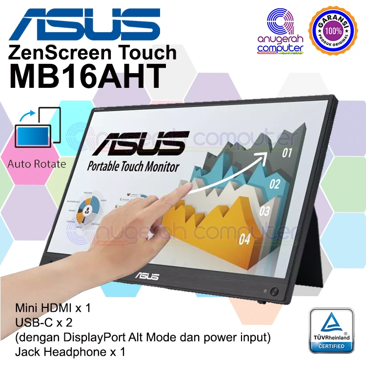 ASUS Monitor ZenScreen Touch 16″ MB16AHT FHD IPS